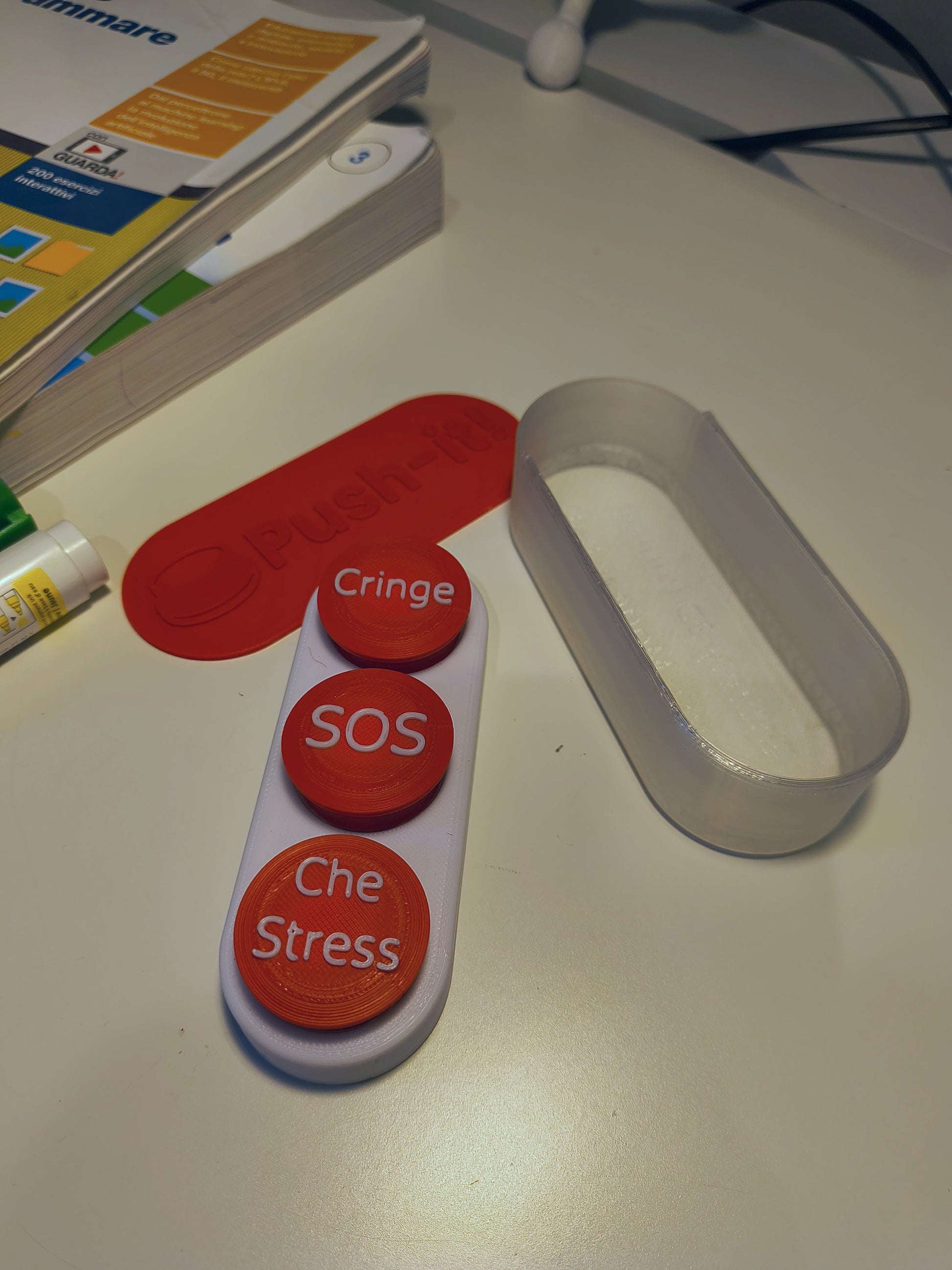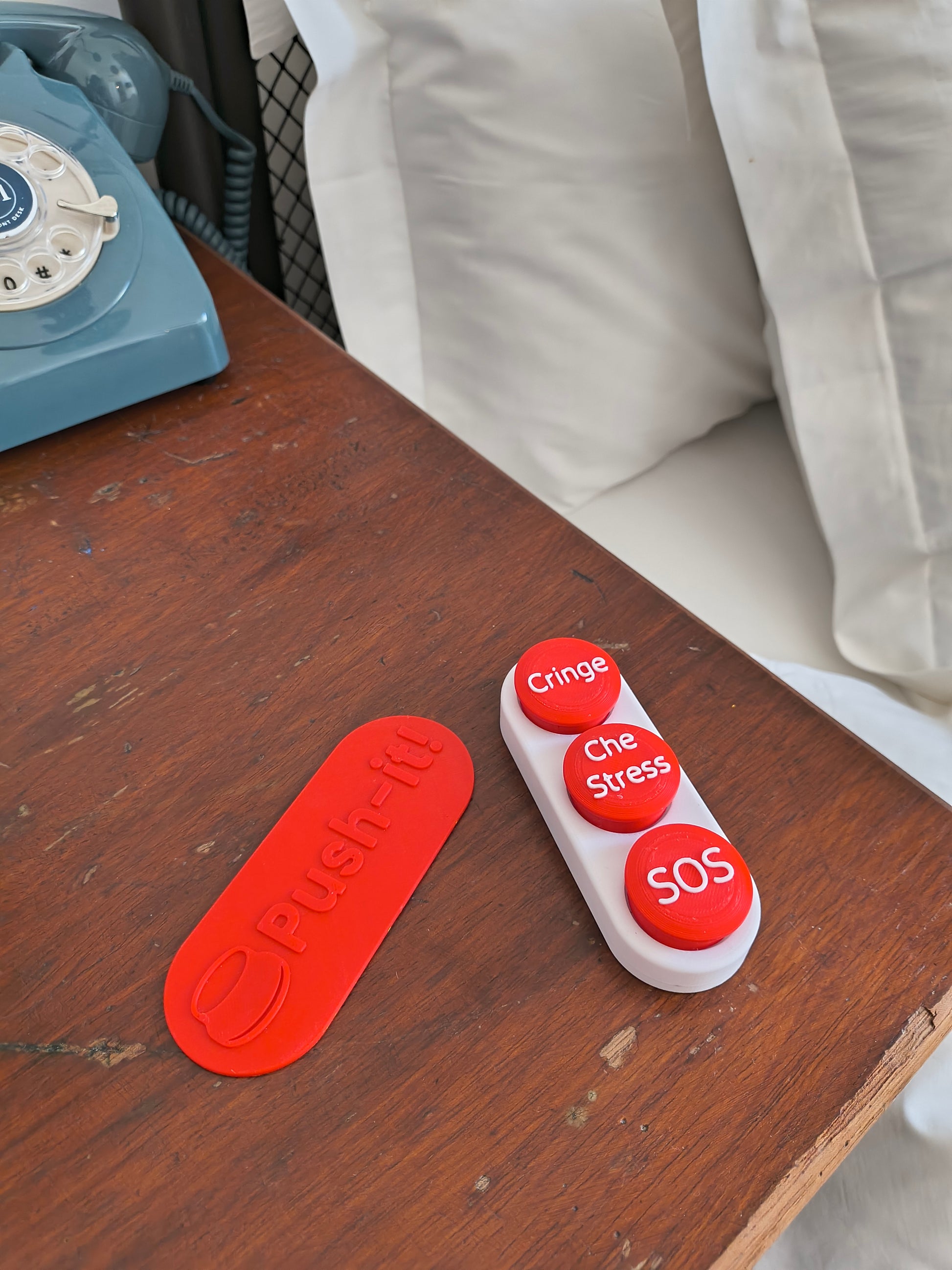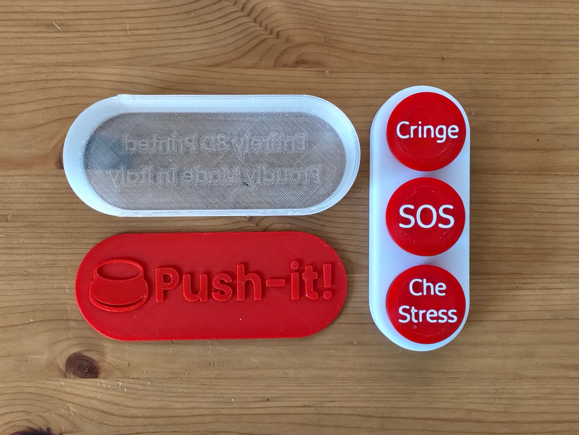 Hai mai sentito il bisogno di un pulsante per dire esattamente ciò che pensi? Con Push-it! CLASSIC puoi personalizzare le scritte sui pulsanti e rendere ogni clic un'esperienza unica! Perfetto per la scrivania, i meme in classe o semplicemente per divertirsi con gli amici.