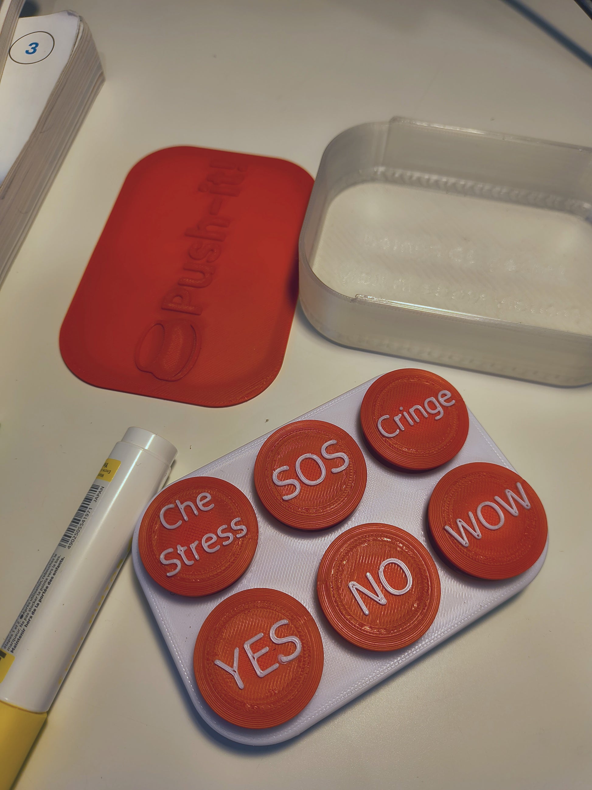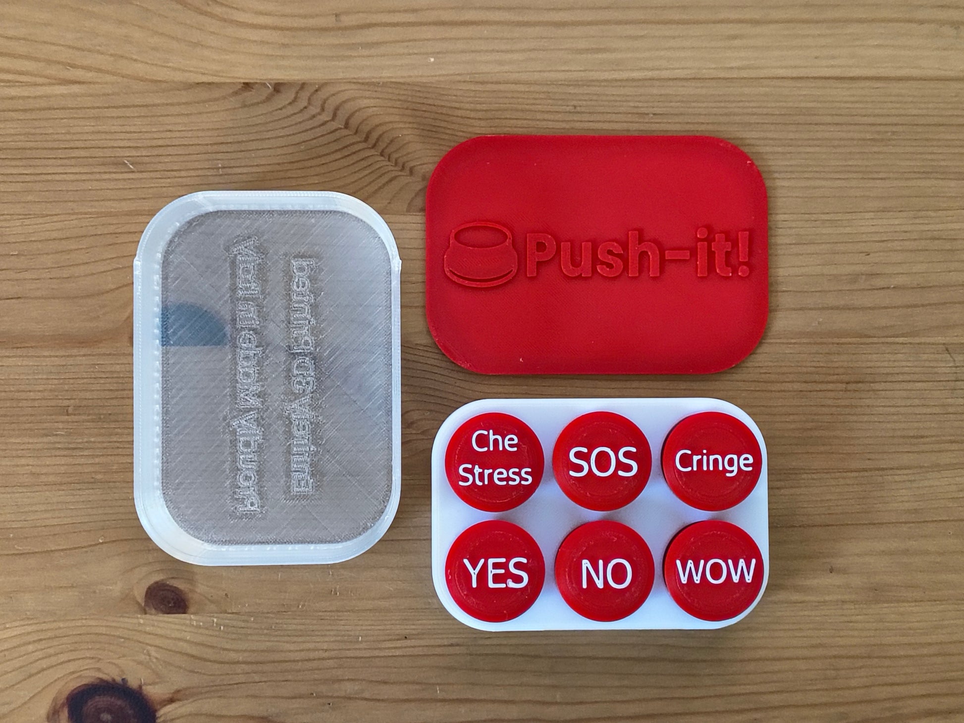 Se 3 pulsanti non bastano, Push-it! PRO è la soluzione! Con 6 pulsanti personalizzabili, puoi esprimerti al meglio in ogni situazione. Perfetto per la scrivania, le lezioni o semplicemente per divertirti con gli amici. E' puro divertimento tattile e visivo!